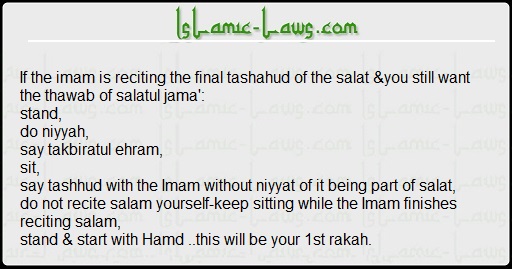 If the Imam is reciting the last tashahud of the salat & u want sawab of sala...